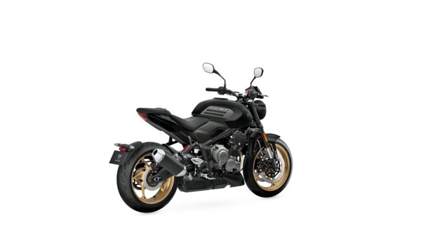 Blending rebellious energy with refined Triumph roadster DNA, its sculpted tank and trim tail create a lean, modern silhouette, while premium finishes, from brushed aluminium to bold colour schemes and contrasting gold-coloured wheels, amplify its dynamic presence. Whether parked kerbside or carving through city streets, the Trident 800 delivers a compelling blend of attitude, performance and precision.