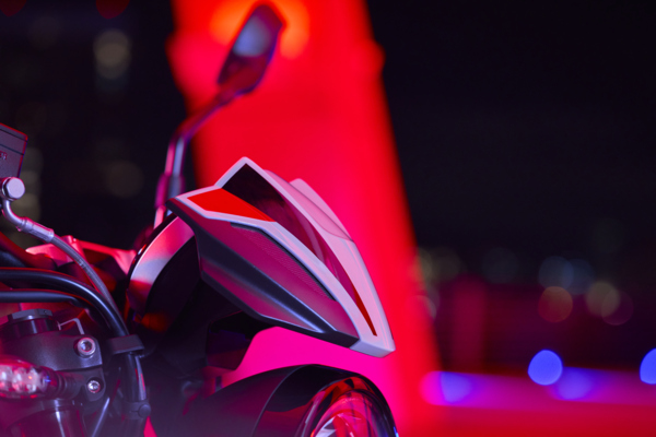 Backing up the engine is a chassis built for high-energy riding, with a lightweight frame and adjustable Showa suspension which deliver razor-sharp handling. The split seat is 810mm high, with a narrow standover, shaped to hold the rider in place. Up front, 41mm upside-down Showa forks feature big-piston, separate-function damping, with adjustable compression and rebound. The rear Showa monoshock offers preload and rebound adjustment for a perfectly tuned ride. Braking is handled by twin 4-piston radial calipers gripping 310mm discs, fed by braided steel lines for strong, progressive stopping power.