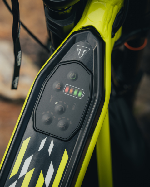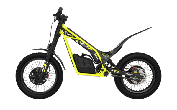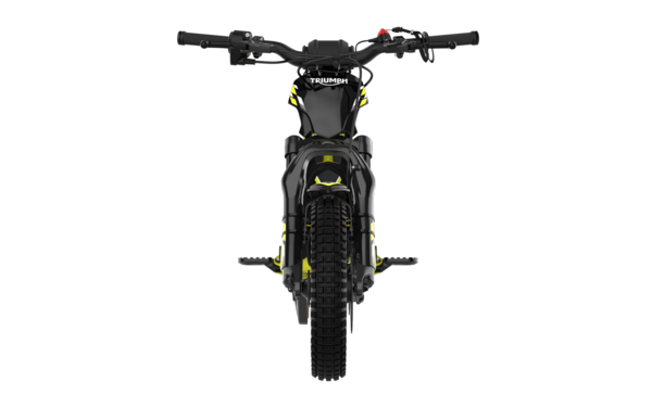 The TXP-12 has a Triumph-tuned 600W 43V brushless motor, and the sealed, high-capacity battery pack provides up to three hours of light riding or shorter sessions at full power in trials mode. An integrated LED panel shows real-time battery state of charge so riders or parents can easily monitor usage, and charging is made easy with tool-free battery removal, a twist-lock connector and built-in carry handle.