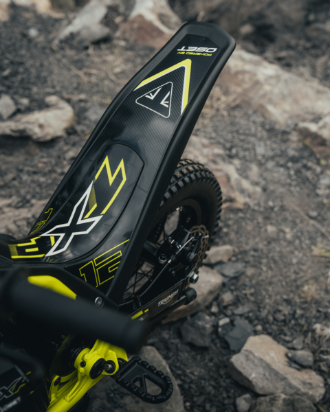 The TXP’s unique 2in1 modular design, features a removable seat and mudguard, enabling parents and riders to switch easily between seated off-road riding (XPlore mode) and standing trials-style (Trials mode).