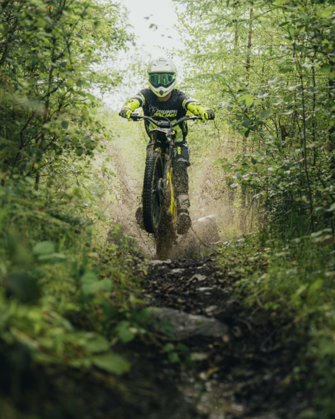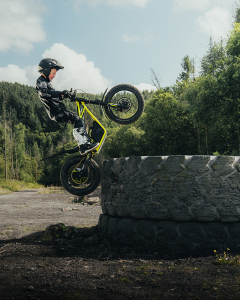 The TXP-20 is designed for riders aged 7 to 10 who are ready to explore more technical terrain or enter junior trials competitions. With a powerful 1600W motor and a high-capacity 50V, 28Ah lithium battery, the TXP-20 offers extended range, up to 22mph top speed and increased torque for confident off-road riding. Triumph’s tuning ensures smooth throttle mapping across all four rider modes, whether configured for trail exploration or trials precision.