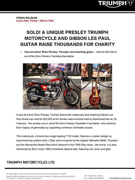 SOLD! A UNIQUE PRESLEY TRIUMPH MOTORCYCLE AND GIBSON LES PAUL GUITAR RAISE THOUSANDS FOR CHARITY