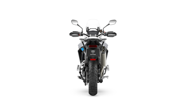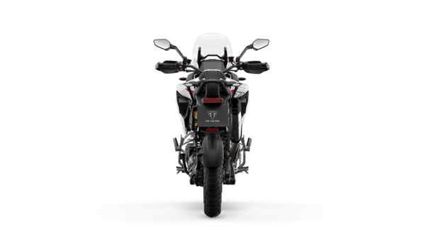 The Tiger 900 Alpine Edition stands out with a crisp Snowdonia White and Sapphire Black colour scheme, enhanced by striking Aegean Blue accents. Key design features include Sapphire Black front mudguard supports, beak, tank end panel, and radiator cowl finisher, complemented by a Snowdonia White fuel tank and seat panel. A bright Aegean Blue rear radiator cowl adds a vivid contrast, echoing the matching tones found in the exclusive Alpine Edition graphics, which are inspired by dramatic mountain contours. Completing the look is a Matt Phantom Black grab rack.