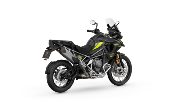 The Tiger 1200 has Showa semi-active suspension across all variants, offering 200mm travel front and rear for exceptional comfort and control. A lightweight “Tri-Link” aluminium swingarm adds strength and stability, while braking performance is maximised by twin 320mm front discs with Brembo Stylema monobloc calipers and a 282mm rear disc with Brembo caliper. Wheels are spoked and tubeless, sized at 21” front and 18” rear, fitted with Bridgestone A41 tyres on the Alpine and Metzeler Karoo Streets on the Desert for optimum performance on all-road adventures.